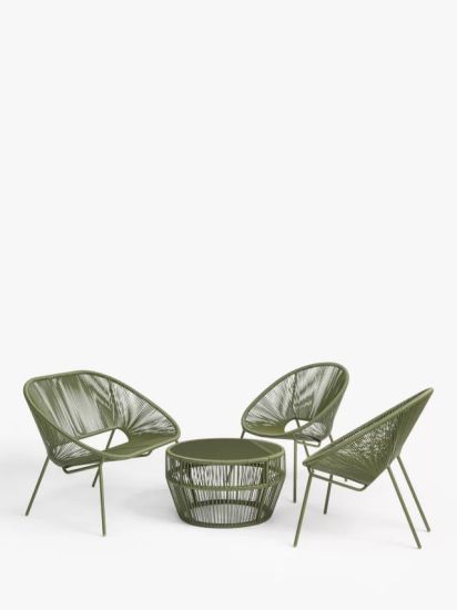 Key Features: Durable and weather-resistant, modern design, sturdy steel frame and synthetic woven construction, perfect for smaller spaces, comes fully assembled.