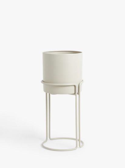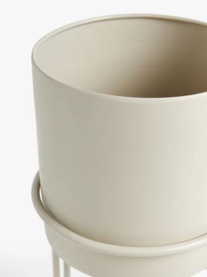 Handcrafted from iron with a powder-coated finish, this plant pot sits on tall legs, adding a sense of height to a space.