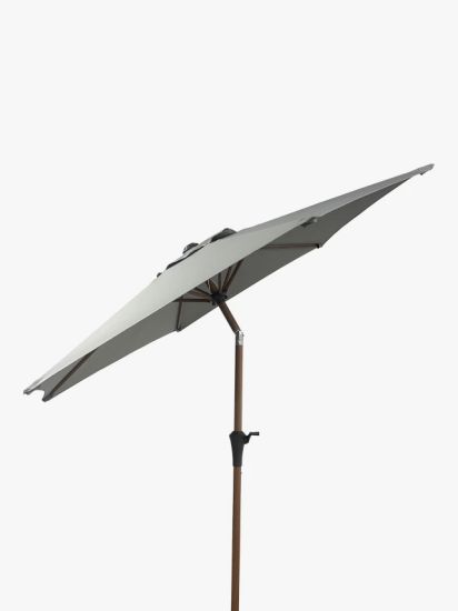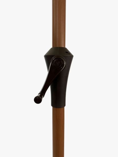 Key features: Winding mechanism, UV50+ sun and waterproof rain canopy, tilt adjustment, sturdy, corrosion-resistant aluminium pole with wood-effect, impact-resistant ribs.